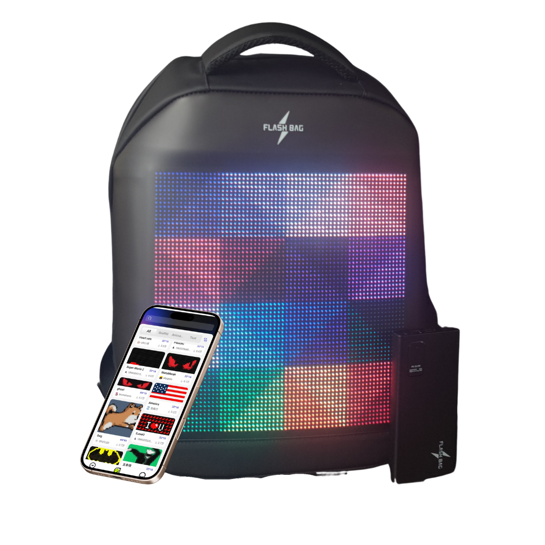 De Flash-Bag LED Rugzak combineert innovatieve technologie, opvallende stijl en praktisch gebruiksgemak in één uniek ontwerp. Met een programmeerbaar LED-scherm, ruime opbergmogelijkheden en duurzame materialen is deze slimme rugzak perfect voor dagelijks gebruik, reizen, en zelfs als een modieus statement. Ontdek hoe de Flash-Bag je leven kan verlichten, letterlijk en figuurlijk!